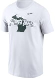 Display your team spirit with this remarkable Michigan State Spartans White LOCAL FLAIR Short Sleeve T Shirt! The MSU Short Sleeve Tee showcases a screen print of team graphic on front chest that truly sets it apart. Stand out from the crowd and proudly declare your allegiance to the Spartans with this exceptional White MSU T Shirt. Go Spartans!