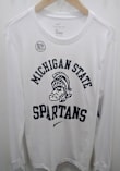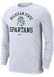 Show your Michigan State Spartans spirit in this MSU White T Shirt! This MSU Legend Long Sleeve T Shirt makes a great layer for cooler nights cheering on the Spartans. Featuring a screen print of "Michigan State" arched over "Spartans" and Sparty logo on front chest, this Michigan State Spartans Long Sleeve Tee is an essential addition for every fan. Go Spartans!