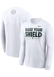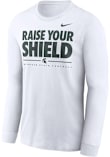 Show your Michigan State Spartans spirit in this MSU White T Shirt! This MSU Football Official 2025 Football Fan Tee Long Sleeve T Shirt makes a great layer for cooler nights cheering on the Spartans. Featuring a screenprint graphic on front chest and back, this Michigan State Spartans Long Sleeve Tee is an essential addition for every fan. Go Spartans!
