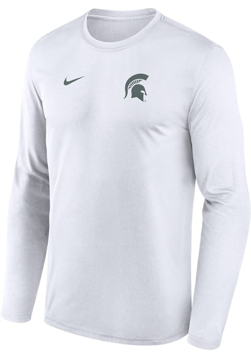 Product Details Product Details Crew NecklineStreamlined athletic fitSelf-fabric neckbandRib crew neck with interior tapingFit: True to Size100% POLYESTERMachine wash coldImported Officially Licensed Make a bold statement in this Michigan State Spartans White Sideline Legend Long Sleeve T-Shirt! This MSU Long Sleeve Tee features a screenprinted small team logo on left chest. Go Spartans!
