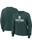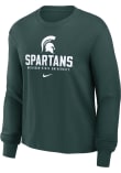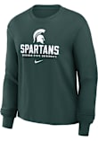 Show your Michigan State Spartans spirit in this MSU Green T-Shirt! This MSU Boxy Long Sleeve T-Shirt makes a great layer for cooler nights cheering on the Spartans. Featuring a screen print team name and logo on center chest, this Michigan State Spartans Long Sleeve LS Tee is an essential addition for every fan. Go Spartans!