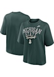 Display your team spirit with this remarkable Michigan State Spartans Green Boxy Short Sleeve T-Shirt! The MSU Short Sleeve Tee showcases a embroidered team name on center chest that truly sets it apart. Stand out from the crowd and proudly declare your allegiance to the Spartans with this exceptional Green MSU T-Shirt. Go Spartans!