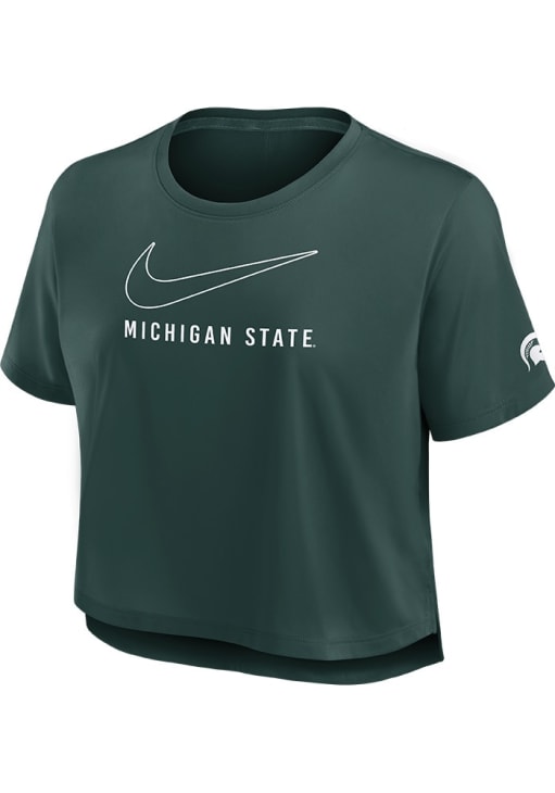 Declare your team allegiance with pride in this striking Michigan State Spartans Green Crop Short Sleeve T-Shirt! This MSU Short Sleeve Tee features a silicone screen print team name on center chest. Don't miss out on showing your true fan spirit. Go Spartans!