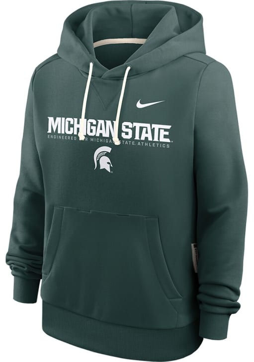 Embrace your Spartans pride and showcase your team spirit with confidence in this Michigan State Spartans Long Sleeve Hoodie! Stay warm and stylish with the MSU Womens Green Sideline Hooded Sweatshirt. Designed with screen print team graphic on center chest, this Spartans Long Sleeve Hoodie is a must-have for dedicated fans.