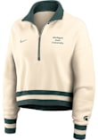Embrace the warmth and showcase your Spartans pride with our Michigan State Spartans Long Sleeve Qtr Zip. This Womens Ivory Phoenix Crop Long Sleeve Pullover offers a embroidered team name on left chest and logo patch on left wrist for the perfect combination of comfort and style. Elevate your everyday look with this must-have Michigan State Spartans Long Sleeve Qtr Zip.