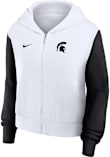 Make a bold statement with your MSU pride with this Michigan State Spartans Full Zip Jacket. Show your team spirit in style in this Womens White Colorblocked Script Long Sleeve Full Zip. Make a statement in this Michigan State Spartans Womens Long Sleeve Full Zip Jacket, which features a screen print team logo at left chest with screen print team name on center back.