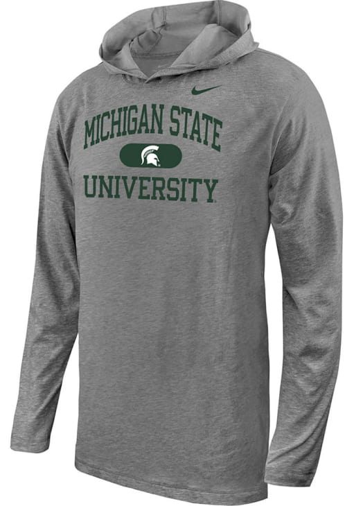 Go to gamedays in style in this Youth Charcoal Michigan State Spartans Nike Authentic Lt Weight Hooded Sweatshirt! This Spartans Hoodie features a team graphic center chest that will be sure to keep you warm and cozy.