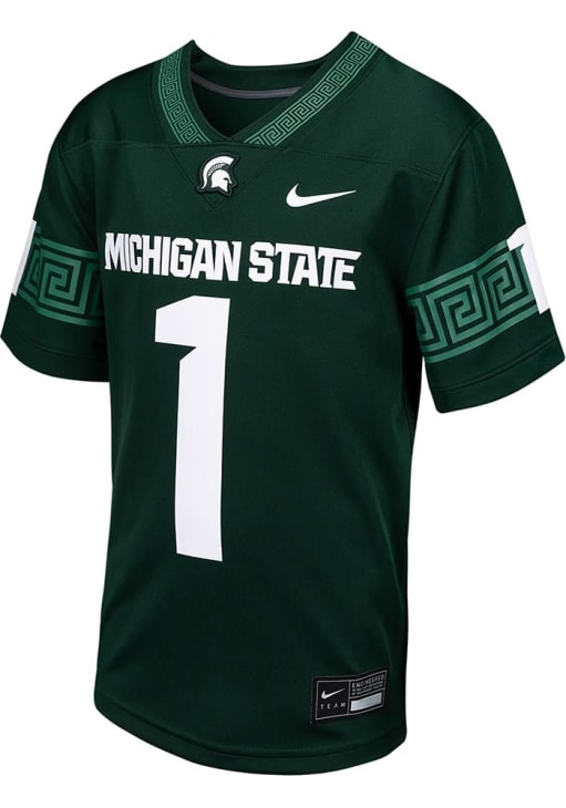 Every MSU fan needs a Youth Green Michigan State Spartans Football Jersey! This MSU Jersey features a screenprint number. Dress up to match the spirit of Spartans for gameday!