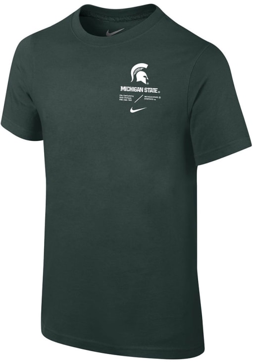 Size Chart for Youth Michigan State Spartans Green Nike SL Team Issue Short Sleeve T-Shirt