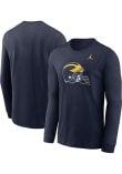 Show your Michigan Wolverines spirit in this Michigan Blue T Shirt! This Michigan Alternate Logo Long Sleeve T Shirt makes a great layer for cooler nights cheering on the Wolverines. Featuring a team graphic on front chest, this Michigan Wolverines Long Sleeve Tee is an essential addition for every fan. Go Michigan!