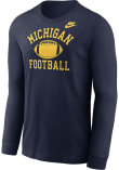 Show your Michigan Wolverines spirit in this Michigan Blue T Shirt! This Michigan Cotton Long Sleeve T Shirt makes a great layer for cooler nights cheering on the Wolverines. Featuring a team graphic on front chest, this Michigan Wolverines Long Sleeve Tee is an essential addition for every fan. Go Michigan!