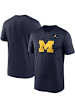 Stay cool and display your Michigan Wolverines spirit in this Blue Jordan Legend Primary Logo T Shirt. This Short Sleeve is the perfect Tee for working out, heading to class, or cheering on the Wolverines. Showcasing a team logo on front chest, there's no mistaking your Michigan Wolverines pride in this Wolverines Jordan Legend Primary Logo T Shirt!