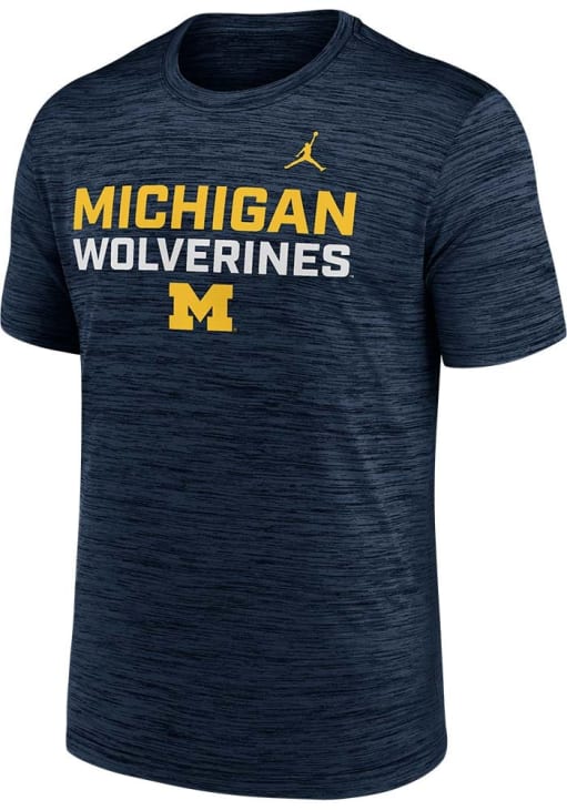 Stay cool and display your Michigan Wolverines spirit in this Blue Velocity T Shirt. This Short Sleeve is the perfect Tee for working out, heading to class, or cheering on the Wolverines. Showcasing a stacked team graphic on front chest, there's no mistaking your Michigan Wolverines pride in this Wolverines Velocity T Shirt!