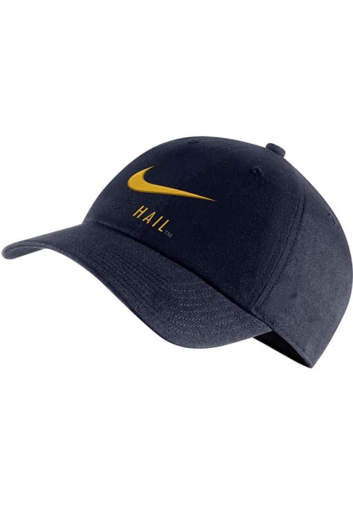 Product Details Product Details Nike - Mens Campus AdjTeam logo embroidered on frontPre-curved visorTeam colorNike logo embroidered on left hand sideCottonCurved BillLow CrownLightly StructuredWipe clean with cloth or cleaning kitImported Officially Licensed This Blue Wolverines Adjustable Hat features a front team logo.