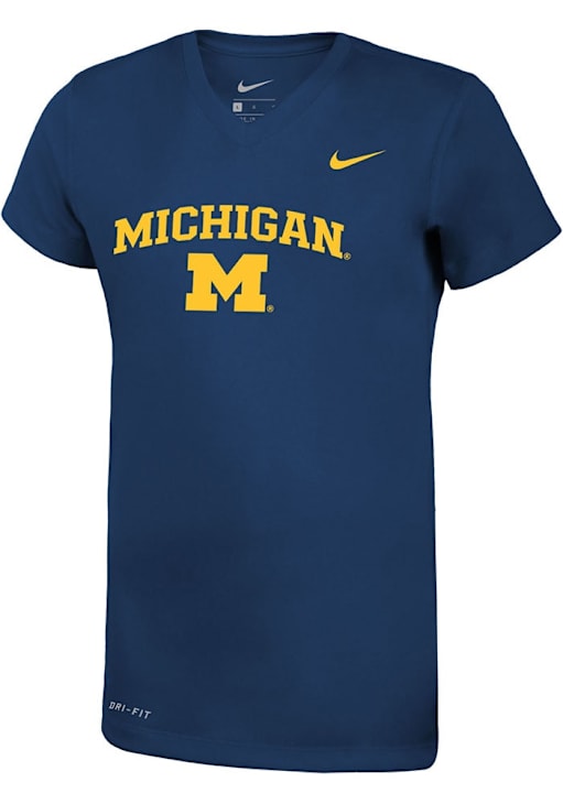 Size Chart for Girls Michigan Wolverines Blue Nike Arch Mascot Short Sleeve T-Shirt