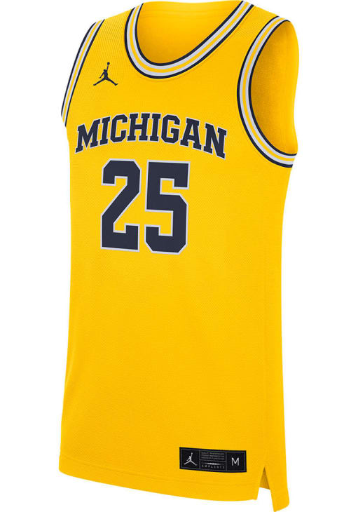 Stand out and showcase your unwavering Michigan pride with confidence in this striking Michigan Wolverines Mens Gold Replica Jersey! Make a statement on gameday with this eye-catching Michigan Wolverines Basketball Jersey, which features a screen print of Michigan over #25 on front and back.