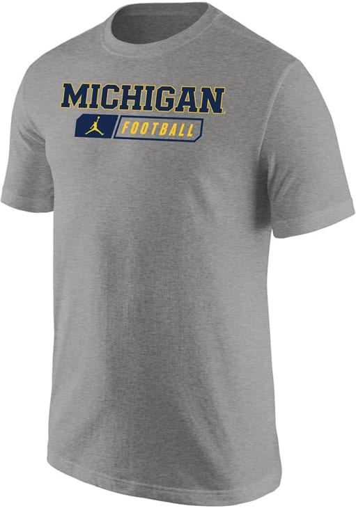 Display your team spirit with this remarkable Michigan Wolverines Grey Jordan Football Core Design Short Sleeve T Shirt! The Michigan Short Sleeve Tee showcases a screen print team graphic across front chest that truly sets it apart. Stand out from the crowd and proudly declare your allegiance to the Wolverines with this exceptional Grey Michigan T Shirt. Go Michigan!