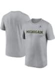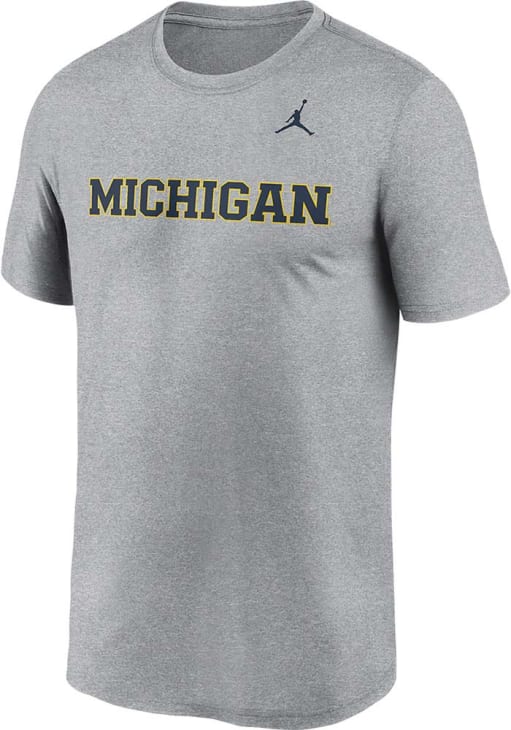 Stay cool and display your Michigan Wolverines spirit in this Grey Jordan Legend T Shirt. This Short Sleeve is the perfect Tee for working out, heading to class, or cheering on the Wolverines. Showcasing a team wordmark on front chest, there's no mistaking your Michigan Wolverines pride in this Wolverines Jordan Legend T Shirt!