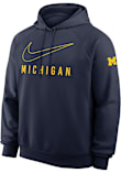 Product Details Product Details Made with recycled polyesterPrimary color drawcordsHoodRibbed sleeve openingScreen printed wordmarke and logos78%POLYESTER/22%COTTONMachine washable Officially Licensed Make a bold statement in this Michigan Wolverines Blue Dri-Fit Long Sleeve Hood! This Michigan Long Sleeve Hoodie features a swoosh and wordmark on front chest and logo on left sleeve. Go Michigan!