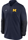 Embrace the warmth and showcase your Wolverines pride with our Michigan Wolverines Long Sleeve Qtr Zip Pullover. This Mens Blue Dri-Fit Long Sleeve Pullover offers a logo on left chest and swoosh on right chest for the perfect combination of comfort and style. Elevate your everyday look with this must-have Michigan Wolverines Long Sleeve Qtr Zip Pullover.