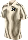 Enhance your professional style with this striking Mens Tan Short Sleeve Polo Shirt! Showcase your team pride among colleagues with this exceptional Michigan Tan Striped Short Sleeve Polo. Stand out and make a statement in this Michigan Wolverines Short Sleeve Polo, featuring a logo on left chest and swoosh on right chest that adds a touch of distinction to your look.