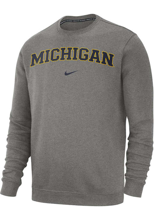 Gear up for the ultimate game day experience with this remarkable Michigan WolverinesMens Grey Club Crew Sweatshirt! Designed with the true fan in mind, this Wolverines Long Sleeve Crew Sweatshirt features a screen printed Michigan wordmark on center chest. Stay warm and comfortable with this Mens Michigan Wolverines Crew Sweatshirt.