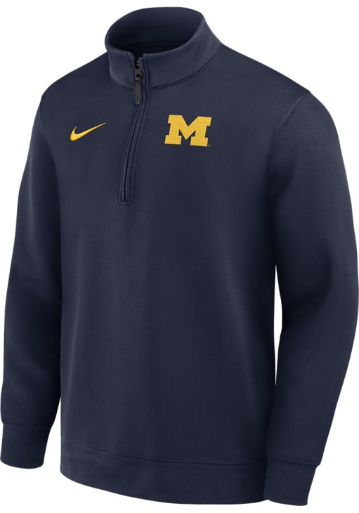 Embrace the warmth and showcase your Wolverines pride with our Michigan Wolverines Long Sleeve Qtr Zip Pullover. This Mens Blue Jordan DriFIT Coaches Long Sleeve Pullover offers a team logo on left chest for the perfect combination of comfort and style. Elevate your everyday look with this must-have Michigan Wolverines Long Sleeve Qtr Zip Pullover.