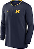 Embrace the warmth and showcase your Wolverines pride with our Michigan Wolverines Long Sleeve Qtr Zip Pullover. This Mens Blue Sideline Jordan Coach Long Sleeve Pullover offers a heat seal of team logo on left chest for the perfect combination of comfort and style. Elevate your everyday look with this must-have Michigan Wolverines Long Sleeve Qtr Zip Pullover.