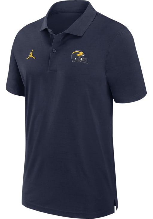 Enhance your professional style with this striking Mens Blue Short Sleeve Polo Shirt! Showcase your team pride among colleagues with this exceptional Michigan Blue Sideline Woven Jordan Short Sleeve Polo. Stand out and make a statement in this Michigan Wolverines Short Sleeve Polo, featuring a heat seal of team logo on left chest that adds a touch of distinction to your look.