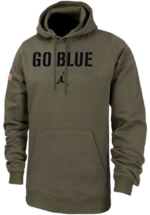 Embrace your Wolverines pride and showcase your team spirit with confidence in this Michigan Wolverines Long Sleeve Hoodie! Stay warm and stylish with the Michigan Mens Olive Military Hooded Sweatshirt. Designed with screenprint of team name on front with USA flag on left shoulder, this Wolverines Long Sleeve Hoodie is a must-have for dedicated fans.
