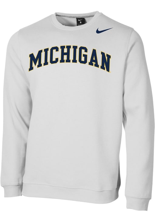 Mens Michigan Wolverines White Nike Club Fleece Essential Crew Sweatshirt