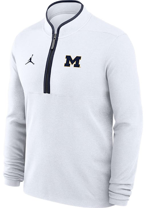 Embrace the warmth and showcase your Wolverines pride with our Michigan Wolverines Long Sleeve Qtr Zip Pullover. This Mens White Jordan Victory Long Sleeve Pullover offers a team logo on left chest for the perfect combination of comfort and style. Elevate your everyday look with this must-have Michigan Wolverines Long Sleeve Qtr Zip Pullover.