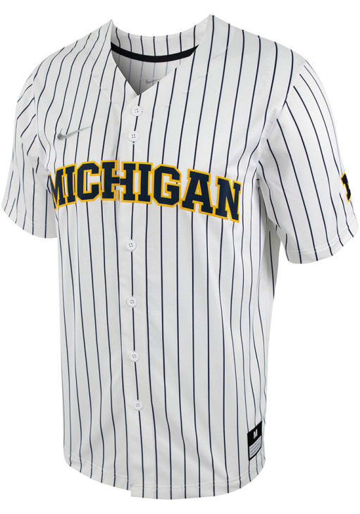 There will be no mistaking your Michigan support when you wear this Michigan Wolverines Mens White Pinstripe Replica Jersey! Look great and stand out from the crowd in this Michigan Wolverines Baseball Jersey, which features a twill applique of team name on left chest.