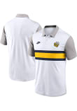 Enhance your professional style with this striking Mens White Short Sleeve Polo Shirt! Showcase your team pride among colleagues with this exceptional Michigan White Vapor Short Sleeve Polo. Stand out and make a statement in this Michigan Wolverines Short Sleeve Polo, featuring a logo on left chest and swoosh on right chest that adds a touch of distinction to your look.