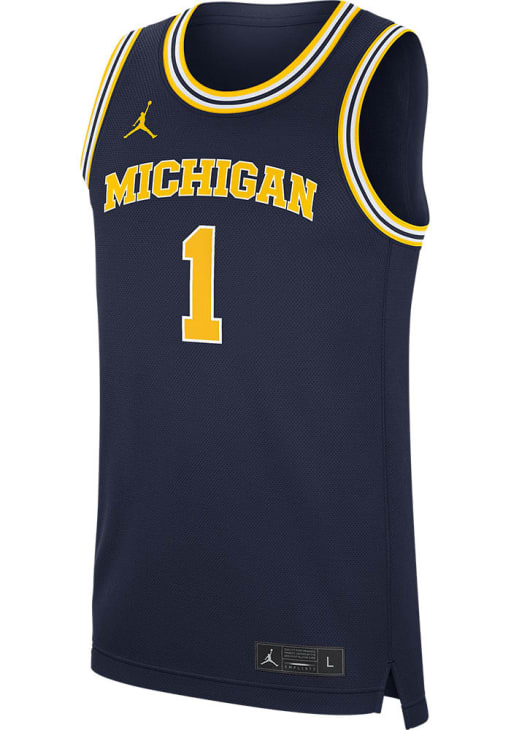 Stand out and showcase your unwavering Michigan pride with confidence in this striking Michigan Wolverines Mens Blue Jordan #1 Replica Road Jersey! Make a statement on gameday with this eye-catching Michigan Wolverines Basketball Jersey, which features a screen printed team name and number on front back.