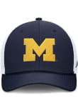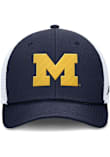 Product Details Product Details Nike Evergreen Rise Structured TruckerFront embroidered team logoSide embroidered Jordan Brand logo6 panel design with eyeletsBack mesh panelsBack plastic snap closureCottonCurved BillLow CrownStructuredWipe clean with cloth or cleaning kitImported Officially Licensed This Blue Wolverines Adjustable Hat features a PRIMARY TEAM LOGO.