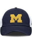 Product Details Product Details Nike Club Unstructured Mesh TruckerFront embroidered team logoSide embroidered Jordan brand logo6 panel design with eyeletsBack mesh panelsBack fabric strap closure with buckleCottonCurved BillLow CrownUnstructuredWipe clean with cloth or cleaning kitImported Officially Licensed This Blue Wolverines Adjustable Hat features a PRIMARY TEAM LOGO.