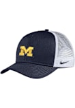Product Details Product Details Nike C99 Adjustable HatFront embroidered team logo6-panel design with eyeletsFabric strap closureSide Nike SwooshCottonCurved BillLow CrownUnstructuredWipe clean with cloth or cleaning kitImported Officially Licensed This Blue Wolverines Adjustable Hat features a team logo on front.