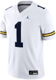 Get in the game with this ultimate Michigan Wolverines Mens White Jordan Road Game Football Jersey. Wear this Jersey to the upcoming tailgate or game for your Wolverines. With a screen print team wordmark and number on front with number on back, this Mens Football Jersey is a great way to show your team spirit in style.
