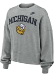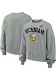 Gear up for the ultimate game day experience with this remarkable Michigan WolverinesWomens Grey Essential Crew Sweatshirt! Designed with the true fan in mind, this Wolverines Long Sleeve Sweatshirt features a screen print team logo on center chest. Stay warm and comfortable with this Womens Michigan Wolverines Crew Sweatshirt.