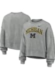 Gear up for the ultimate game day experience with this remarkable Michigan WolverinesWomens Grey Phoenix Crew Sweatshirt! Designed with the true fan in mind, this Wolverines Long Sleeve Sweatshirt features a embroidered and tackle twill team name and logo on center chest. Stay warm and comfortable with this Womens Michigan Wolverines Crew Sweatshirt.