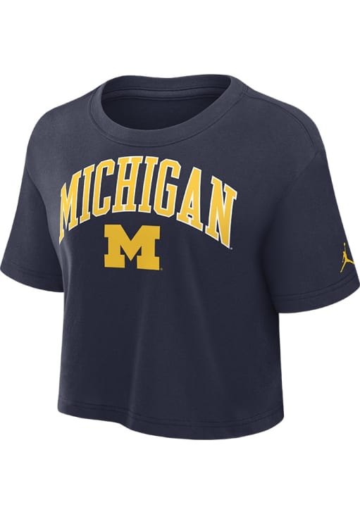 Display your team spirit with this remarkable Michigan Wolverines Blue Arch Crop Short Sleeve T-Shirt! The Michigan Short Sleeve Tee showcases a screen print team name and logo on center chest that truly sets it apart. Stand out from the crowd and proudly declare your allegiance to the Wolverines with this exceptional Blue Michigan T-Shirt. Go Michigan!