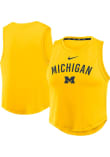 Elevate your tailgating style with this Michigan Wolverines Womens Tank Top. Stay fashionable and comfortable in the refreshing Yellow Crop Sleeveless Shirt. Discover the enticing details of this Michigan Tank Top, showcasing a silicone screen print team graphic on center chest that's sure to impress.