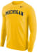 Show your Michigan Wolverines spirit in this Michigan Yellow T Shirt! This Michigan Core Design Long Sleeve T Shirt makes a great layer for cooler nights cheering on the Wolverines. Featuring a screen print team graphic across front chest, this Michigan Wolverines Long Sleeve Tee is an essential addition for every fan. Go Michigan!