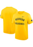 Display your team spirit with this remarkable Michigan Wolverines Yellow Dri-Fit Short Sleeve T Shirt! The Michigan Short Sleeve Tee showcases a wordmark on front chest and logo on left sleeve that truly sets it apart. Stand out from the crowd and proudly declare your allegiance to the Wolverines with this exceptional Yellow Michigan T Shirt. Go Michigan!
