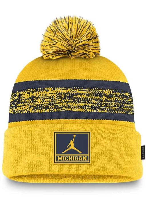 Michigan Wolverines Nike Peak Standard Cuff Pom Beanie Mens Knit Hat - Yellow