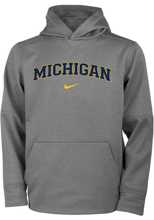 Go to gamedays in style in this Youth Grey Michigan Wolverines Nike Arch Wordmark Hooded Sweatshirt! This Wolverines Hoodie features a screen print team graphic that will be sure to keep you warm and cozy.