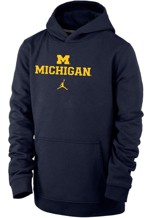 Go to gamedays in style in this Youth Blue Michigan Wolverines Nike Logo Wordmark Jordan Hooded Sweatshirt! This Wolverines Hoodie features a screen print team graphic that will be sure to keep you warm and cozy.