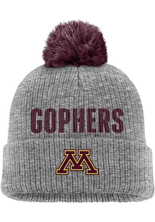 Stay in style during the cold part of the year with this Minnesota Golden Gophers Mens Peak Cuffed Pom Beanie Knit Hat! You can show your Golden Gophers spirit with this Knit Hat that features a front embroidered primary team logo with team wordmark on crown.