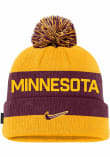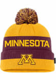 Stay in style during the cold part of the year with this Minnesota Golden Gophers Mens Peak Cuffed Beanie Pom Knit Hat! You can show your Golden Gophers spirit with this Knit Hat that features a front embroidered primary team logo with team wordmark on crown.